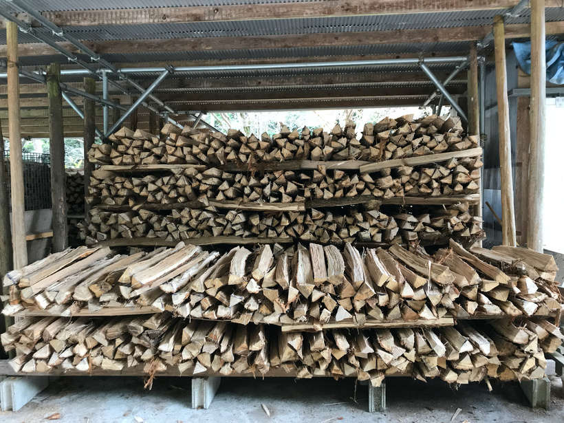 ドイツ製薪割り機を使っての薪づくりを行っています。1mに玉切りをして1mの長さで割ります。これがヨーロッパスタイルで1mの長さの薪が基準規格となっています。その薪をストーブの燃焼室の大きさの合わせて1/1、1/2、 1/3、1/4にカットして使います。この長さが薪の規格になっていますので、ストーブメーカーはその薪を使用することを前提にストーブを製作し最大限にポテンシャルが引き出される様に設計されています。薪を燃焼室に入れたとき薪の両端が5㎝程度の隙間が開いた薪長さがそのストーブに最も適した薪長さです。太さは外周が25センチ程度、重さが1kgが最適な薪になりますが、樹種によっては重さが変わりますので、長さと大きさを参考にしてください。皆様の薪づくりの参考になれば幸いです。