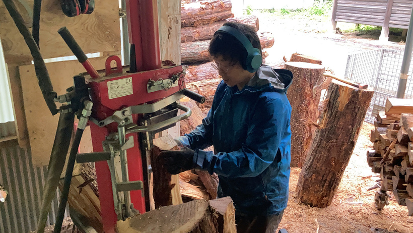 薪割りの事故 2023.05.20 先日入荷した10tの原木を早速薪割り。山積みになった原木を順番に1mに玉切りをして薪割り機で割っていきます。約4mの原木を玉切りしていくのですが一番端をカットした時、残りの3mの原木がゴロンと転がり足を挟まれてしまいました。捻った原木はカットすると重心が変わって動く事があります。1人では全く動かないほど重い原木。幸い助手のおかげで退かす事ができましたが、1人で作業していたらと思うとゾッとします。幸い骨折せず済みましたが今日はびっこを曳いてます。