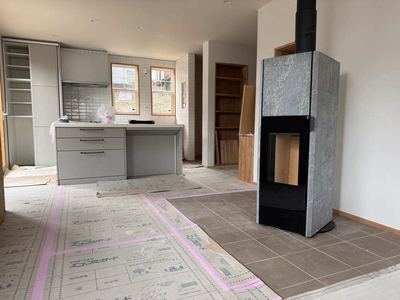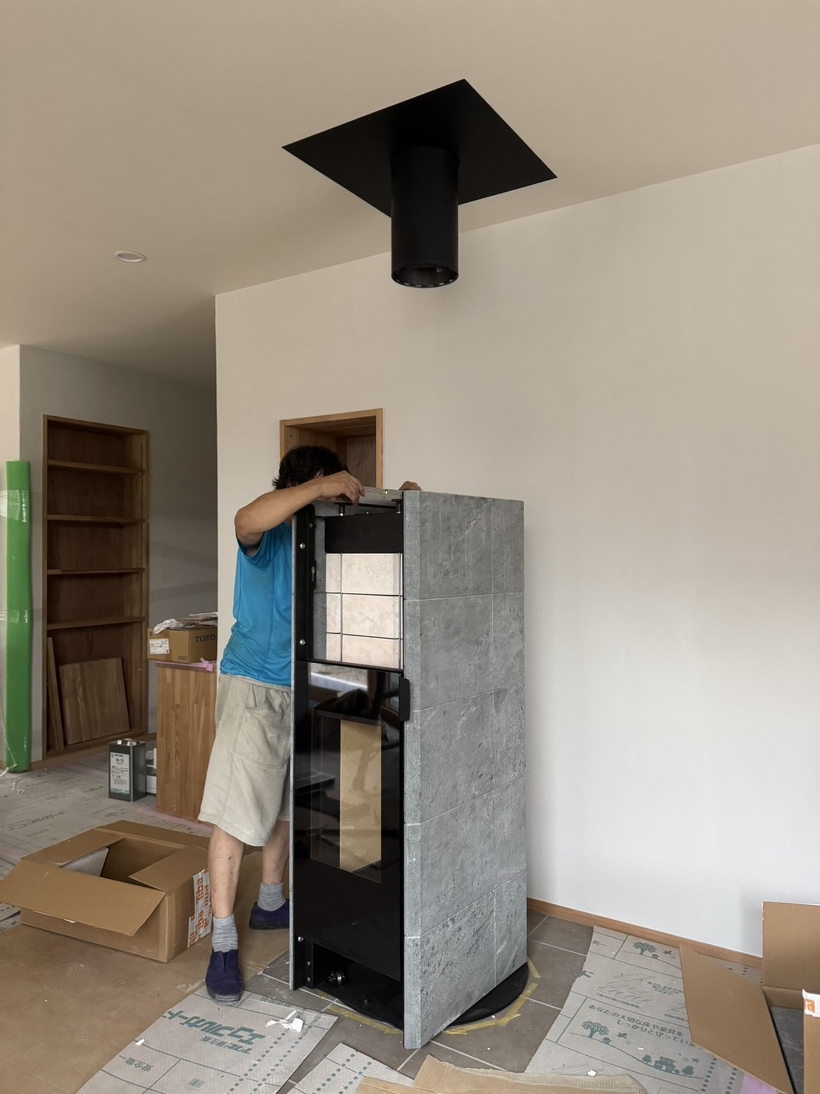 T-LINE/SOAPSTONEを低エネルギー住宅に設置させて頂きました。普通の薪ストーブを高気密高断熱住宅に設置した場合熱くなりすぎてしまい不快感を感じてしまいます。また逆流や火が消えてしまうなどのトラブルが起きてしまいますが、このストーブはそのような事は起きません。たとえC値0.1のような超高気密住宅でも快適な暖かさで安心して使う事ができます。DIBt認証ストーブであることは勿論ですがそれだけではトラブルを起こしてしまう事があります。外気の取り入れ方経路の作り方煙突の接続方法など注意すべき点が沢山あります。それらが全て完璧にできていないと低エネルギー住宅で薪ストーブを快適に安全にトラブルを起こさず使う事はできません。もし何か困り事のある方がいらっしゃいましたら青い空にお問い合わせくださいませ。