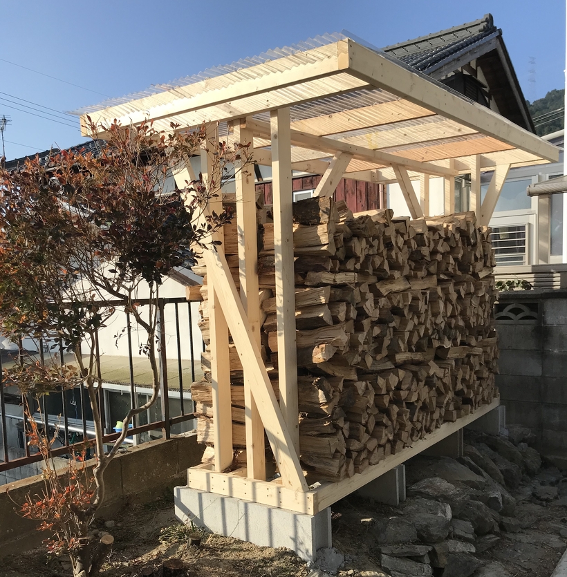 薪棚には屋根を大きくかけ雨から薪を守る必要があります。また風通しと日当たりが良い場所が薪棚の設置場所として最適です。