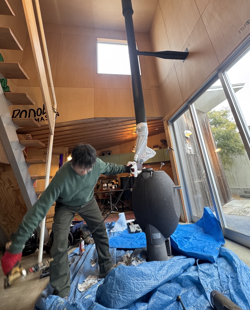 このお客様の薪ストーブは蓄熱薪ストーブなので追加の薪を投入しなくても暖かく過ごせます。しかし炎のゆらめきを楽しむ事は薪ストーブの醍醐味でもあります。