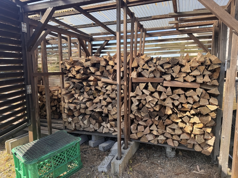 この薪棚はすごく理想的な薪棚だと思いました。こんな素敵な薪棚へ薪を積ませていただく時はとても幸せな気分になります。