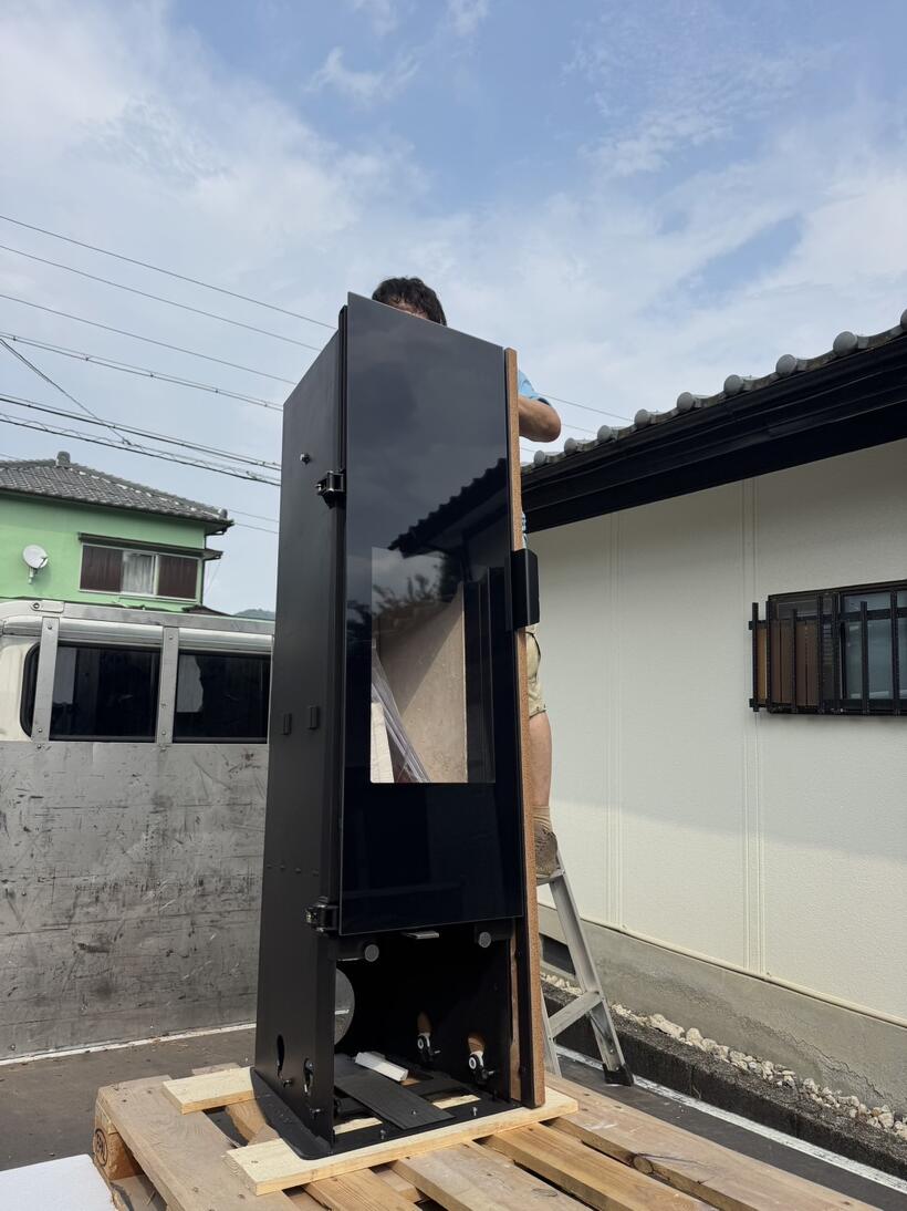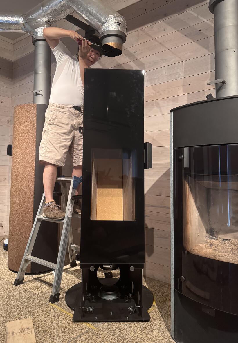 新しいストーブがショールームに仲間入り 2025.07.28 310㎏のT-ARTの搬入にはトラックの上でパーツを外さないと重くて持てません。 慎重にパーツを外していきます。 定位置に設置出来ればあとは煙突と外したパーツを組み立てて完了。運び入れるまでが大変です。 火入れを待つT-ART。DIBt認証ストーブでC値0.1でも煙が室内に逆流する事はありません。ターンディスク付きなのでストーブを回転させ、部屋のどこからでも炎を鑑賞できます。