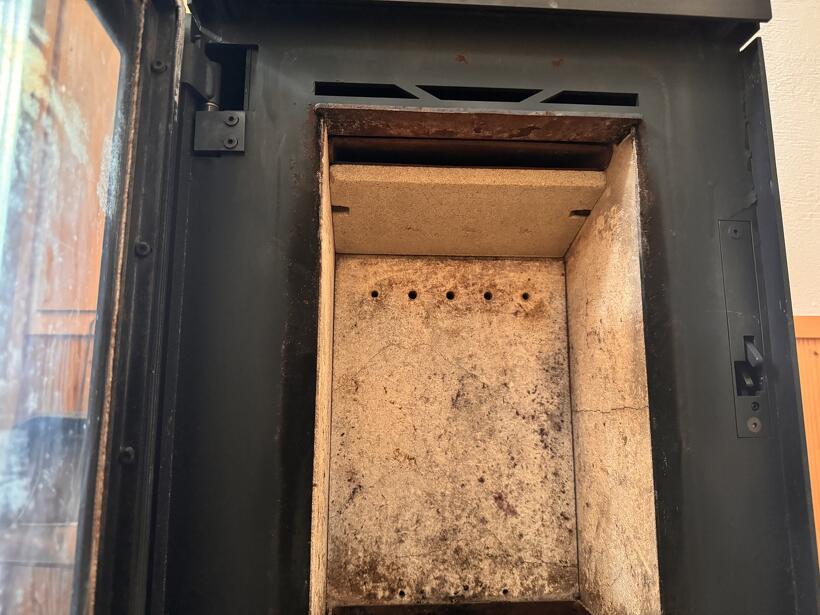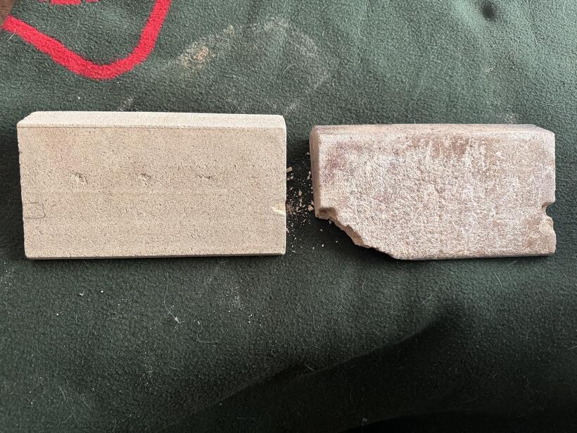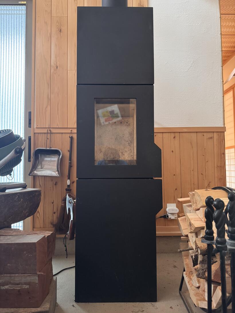 パーツの交換 2025.08.14 MONOLITHの燃焼室トップバーミキュライトの破損したパーツを交換させて頂きました。軸受けの穴が空いていないので現場で加工。左写真の右側を少し加工し始めたところで撮影。 軸受けの加工後綺麗に収まったパーツ。 修理が完成した、MONOLITHの全体像。ガラスに余計なものが映り込んでいたことに気が付かず残念な写真になってしまいました。