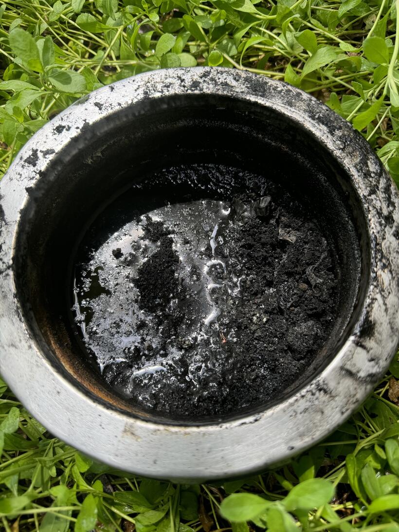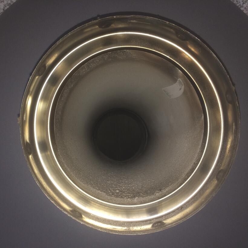 壁出しのもう一つのメリットは喩えトップから雨水が侵入してもストーブまで落ちてきません。写真は煙突の一番下についている煙突キャップです。ごく稀にこのように雨水がトップから入り込んで煙突最下部に溜まっていることがあります。
