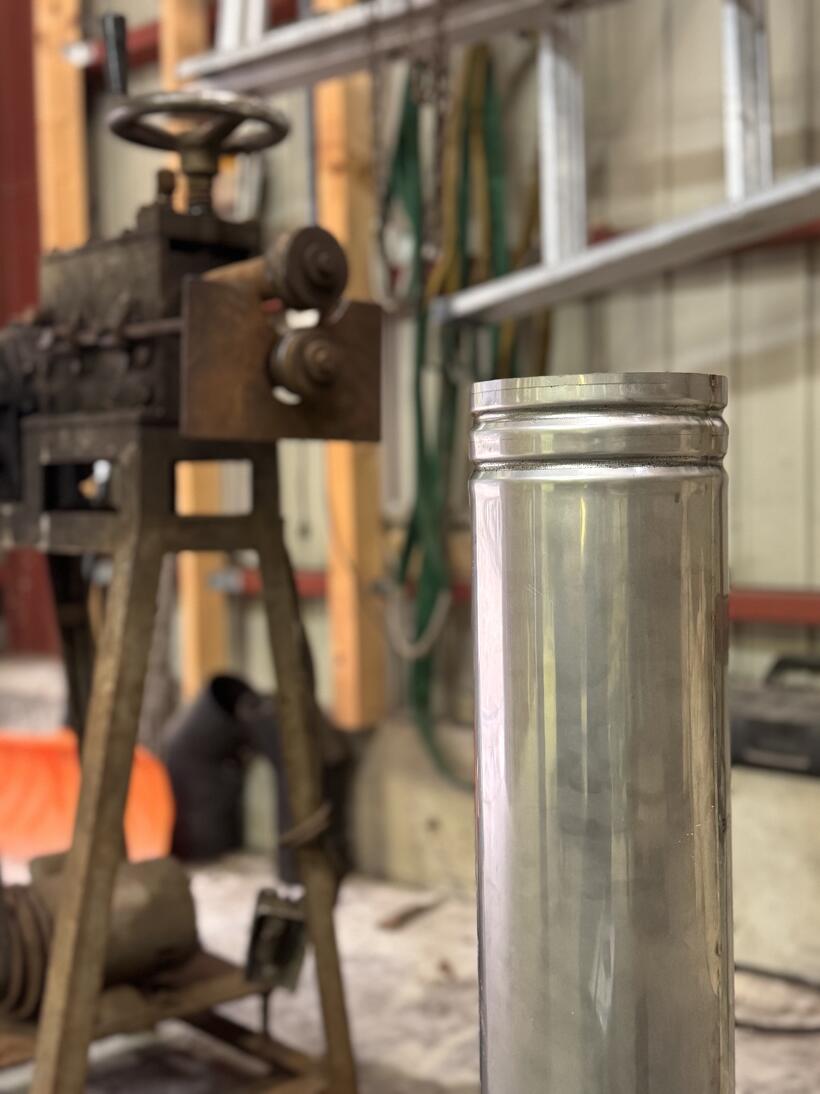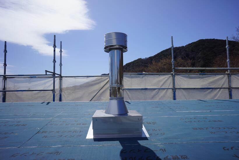 高気密用煙突の加工 2025.10.19 近年住宅は高気密化が進み従来の煙突では接続部からの逆流が起きてしまいます。ストーブ本体はDIBtの認証が信頼の証になっていますが、煙突にはその様な認証機関がありません。そこで青い空では高気密用住宅用のシングル煙突を作っています。その煙突と機械がこの写真。かなり年季の入った機械ですが綺麗に加工ができます。最近は断熱煙突のロッキングバンドに少し手を加え高気密住宅に対応できる様にしました。そのほか高気密住宅に対応した断熱フラシングなど青い空オリジナルのパーツを作っています。 この断熱フラッシングは板金でも瓦でもどんな屋根材でも対応できます。