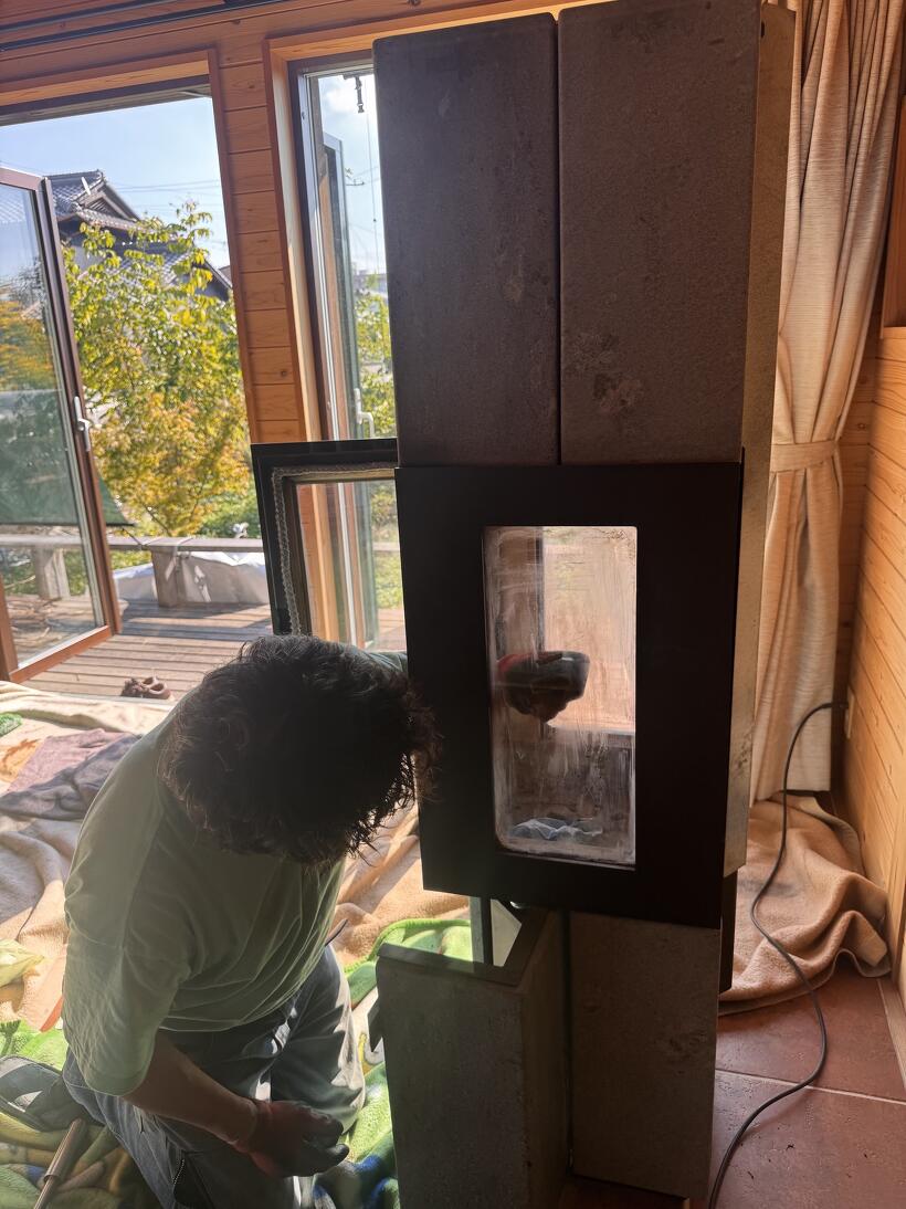 苦労しましたがガラスの白く曇った頑固な汚れを落とさせてもらいました。シーズン中も時々汚れを落として頂くと苦労せずに落とす事ができます。汚れの落とし方は濡れたテイッシュに灰をつけて擦ると簡単に落とせます。しつこい汚れには専用のイレイザーがあり今回はそれを使わせて頂きました。