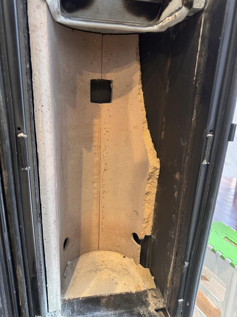 新品同様になったT-ONEの燃焼室 2026.01.17 21年使用されたT-ONE。これからも長くご使用していただける様に燃焼室のパーツを全て交換させて戴きました。 新品のインナーパーツが納まったところ。ここは普段目にする事ができない部分。実はこういった箇所のダメージをチェックする事が大事。 最後は煉瓦を納めて完了です。 煙突も掃除させて戴きました。 綺麗になった煙突で安心して使って頂けます。